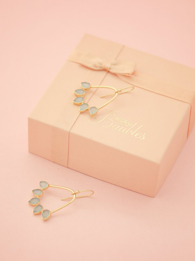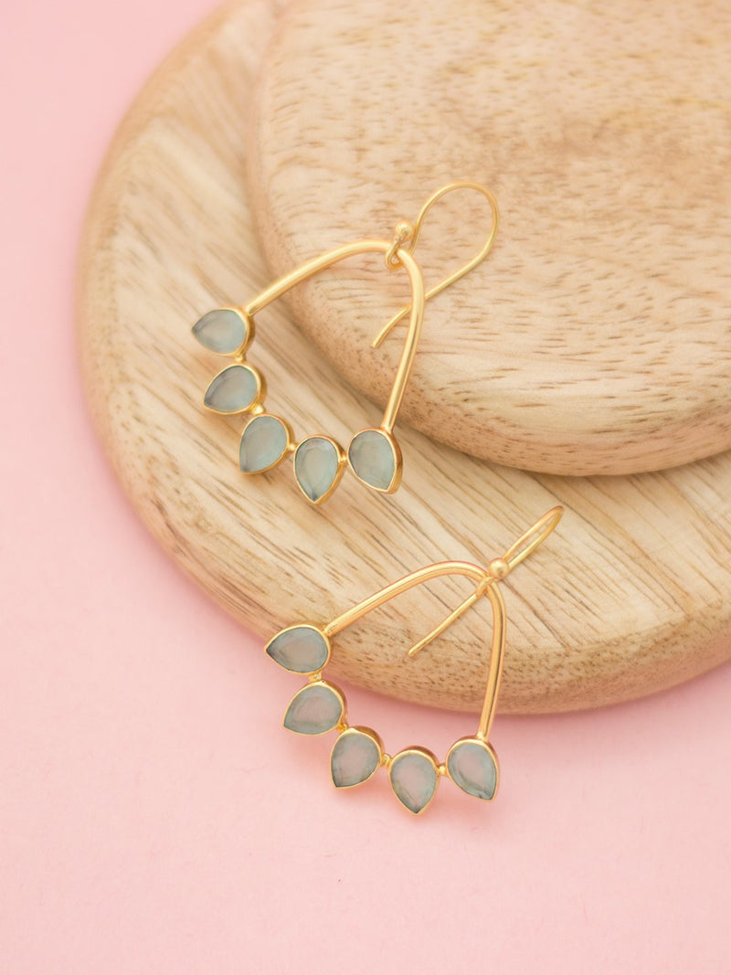 Aria Gold Plated Earrings with Aqua Chalcedony Semi Precious Stones