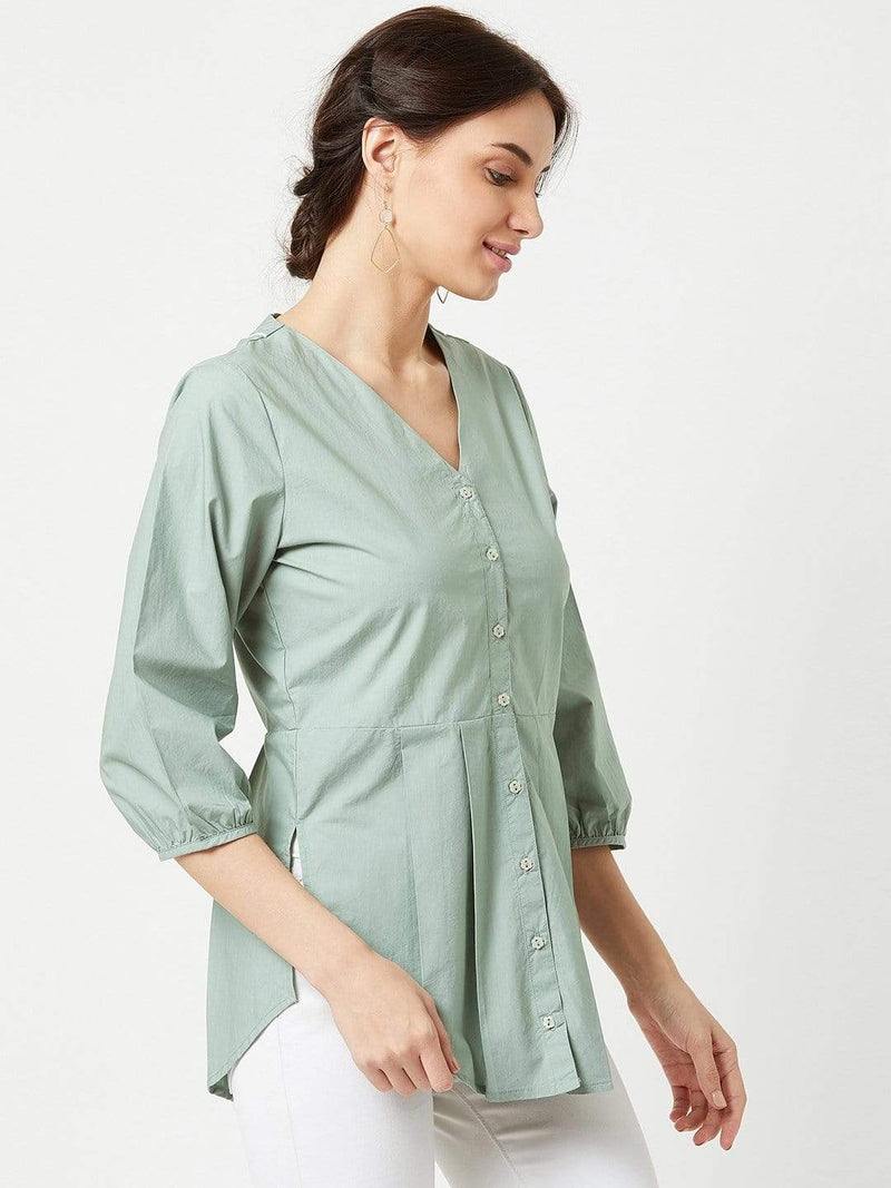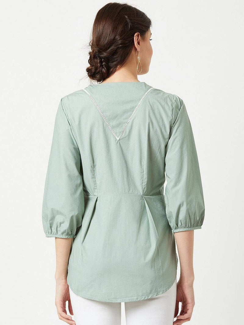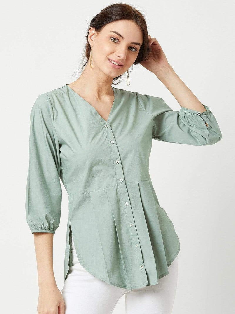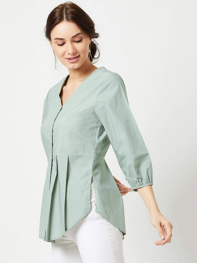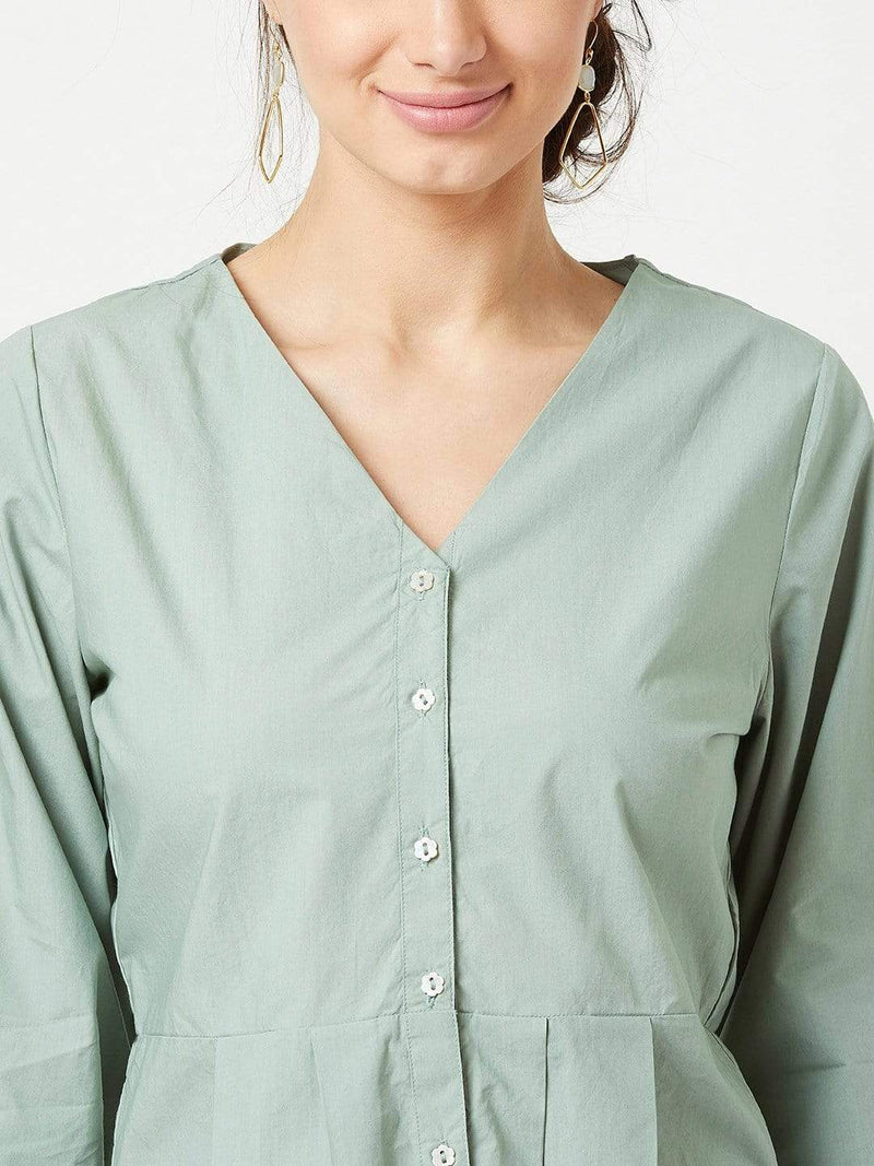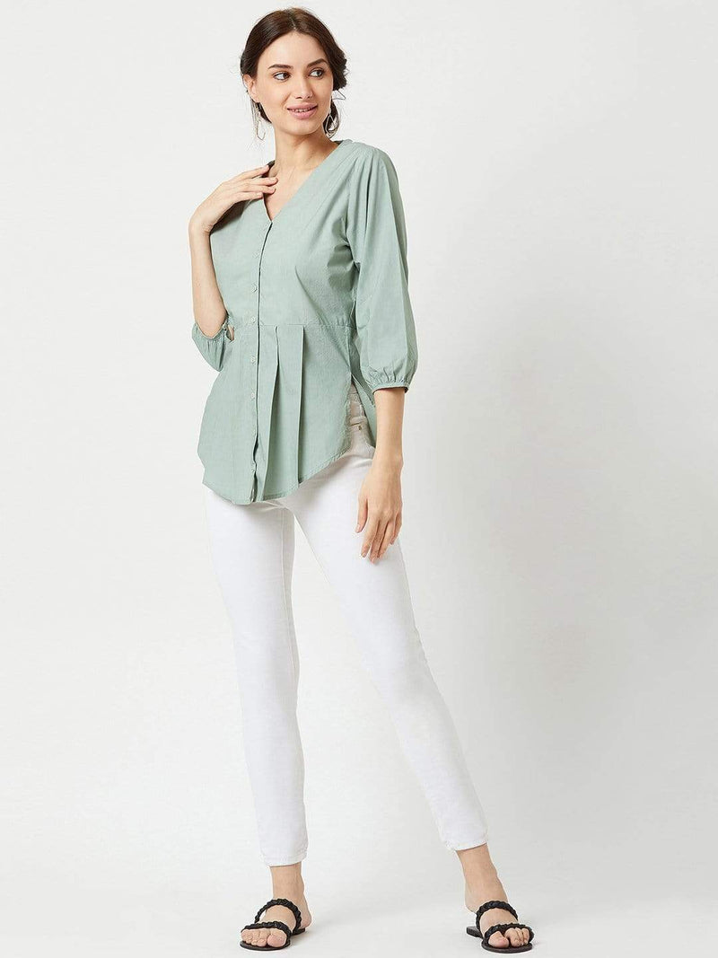 Trouvaille- Pleated Blouse- Mint Green